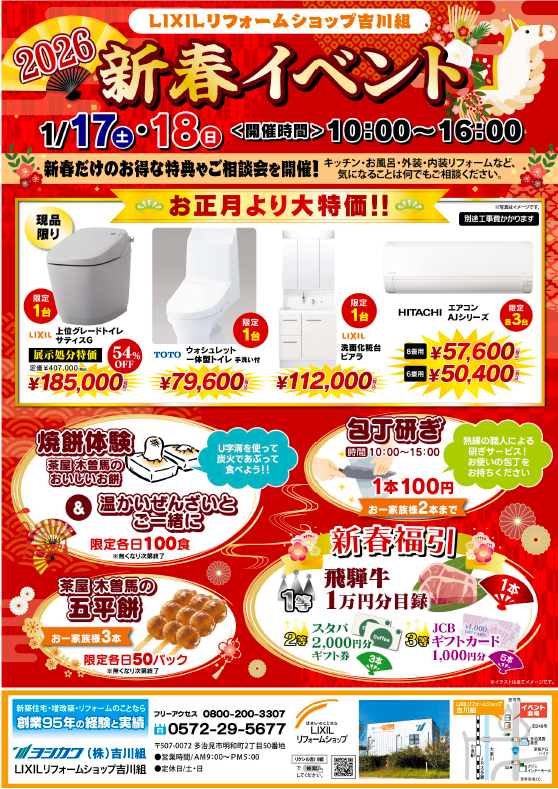 期間中は、お正月特価でご案内するリフォーム設備を多数ご用意。