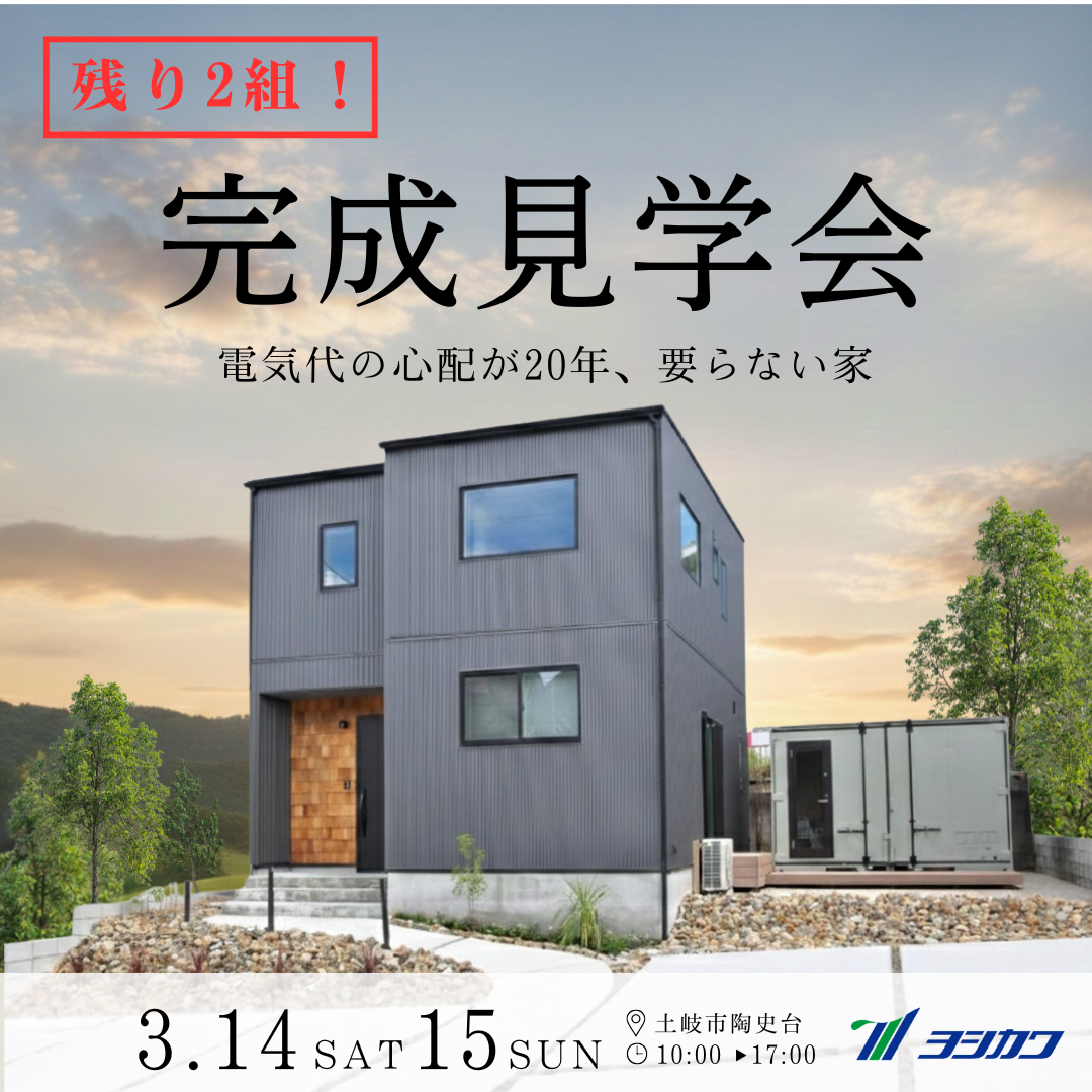 終了 残り2組! 3/14~3/15【土岐市陶史台】家の外にも自由がある家。モデルハウス見学会 開催日 2026/3/14~3/15 開催時間 10:00~17:00 開催場所 土岐市陶史台 モデルハウスで見学できるポイント ラインからご予約 公式LINE お電話(営業時間 平日祝日8:00~17:00) お電話